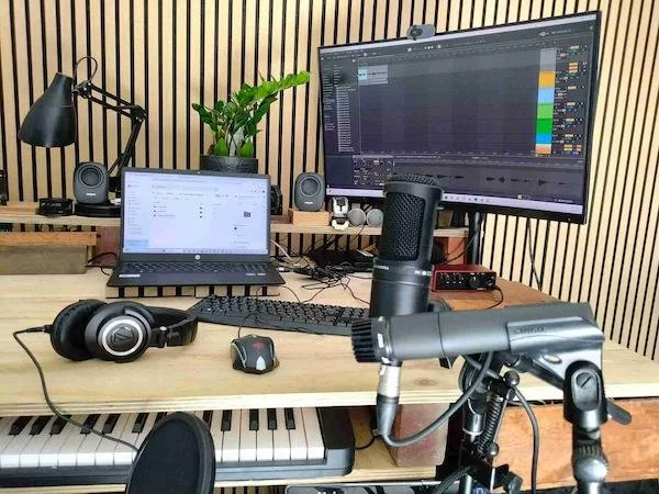 Vocal/Guitar Recording zone, various dynamic and condenser microphones available for use.